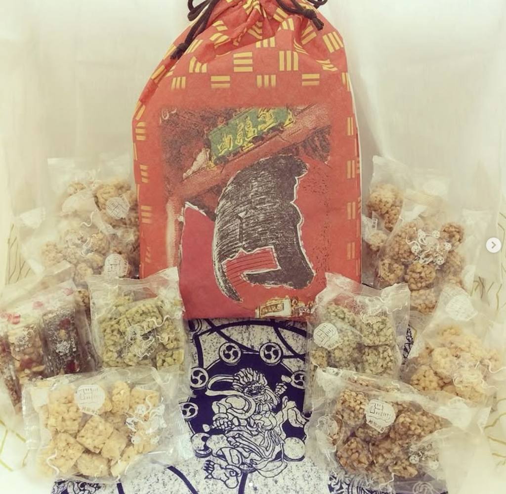 It contains our signature Kaminari Okoshi, featuring a Kaminarimon design and available exclusively at our main store.